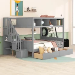 Twin Over Full Bunk Bed With Shelves, Storage Staircase And 2 Drawers – ModernLuxe